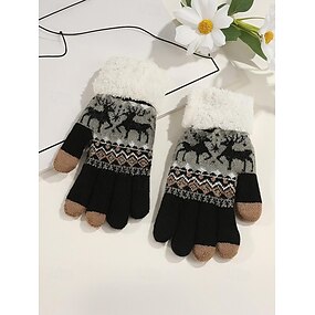 Damskie rękawiczki świąteczne z funkcją ekranów dotykowych, przytulny dzianinowy wzór z motywem płatka śniegu i łosia, miękki polarowy mankiet, idealne na święta i zimę
