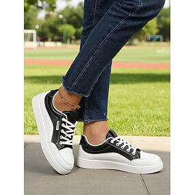 Damskie czarne trampki na platformie – nowoczesny styl uliczny i wygodne buty sznurowane do chodzenia, podróżowania, szkoły i noszenia na co dzień