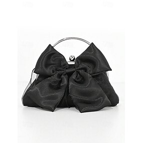 damska satynowa kokardka wieczorowa kopertówka – elegancka torebka z perłową ramką na rączkę dla panien młodych, na wesela, koktajle i formalne wydarzenia srebrno-czarno-biała