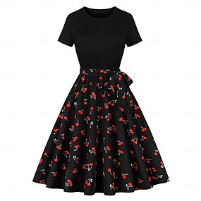 Retro / vintage Lata 50. Rockabilly Sukienka Sukienka huśtawka Krótkie rękawy Strój na bal maskowy Damskie Karnawał Bal maskowy Dzienne zużycie Wieczór panieński Dla dorosłych Sukienka