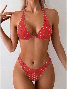 Damskie Stroje kąpielowe Bikini 2 szt Wysoki krój Kostium kąpielowy Szczupła Odkryte plecy Urlop Stroje plażowe Groszki Kantarka Bez rękawów Kostiumy kąpielowe