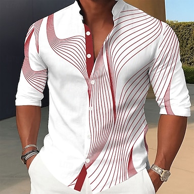 Męskie Geometryczny Gradient Falowane Koszula Koszula ze stójką Długi rękaw Moda na co dzień Na co dzień Święto Wiosna Jesień Kołnierzyk chiński Stójka Druk 3D Koszule zapinane na guziki Czerwony