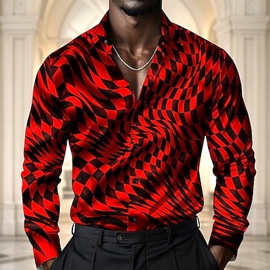 Męskie Gradient Wzór geometryczny Koszula Zapinana na guziki koszula Długi rękaw Moda Designerskie Codzienny Na zewnątrz Urlop Codzienny Jesień i zima Kołnierz Nadruk Przycisk w dół Czarny Czerwony