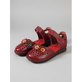 Eleganckie, skórzane balerinki damskie w kwiaty | wygodne, wsuwane buty w stylu vintage na wesele, do biura i na wiosenne wyjścia