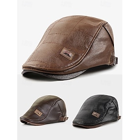 męska brązowa czapka z płaską podeszwą ze sztucznej skóry z pikowanym wzorem – klasyczna czapka gazeciarza w stylu vintage do noszenia na co dzień i na świeżym powietrzu