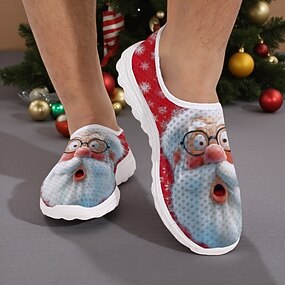 Męskie, wsuwane trampki z nadrukiem Świętego Mikołaja, lekkie, przewiewne, codzienne buty na imprezy świąteczne, świąteczne stylizacje i zimowe prezenty
