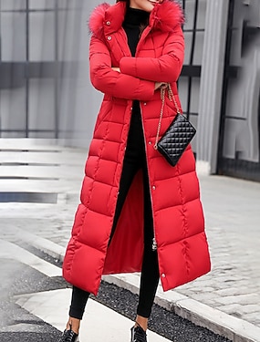 Damskie Płaszcz zimowy Dół Kurtka z kapturem Zatrzymujący ciepło Wygodny Zamek Kieszeń Futrzany kołnierz Codzienny Równina Na zewnątrz Urlop Ulica Dzienne zużycie Długie Kaptur Regularny Długi rękaw