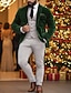 Męskie Marynarka Smokin Kołnierz zamykający Święta Zabytkowe Solidne kolory Blazer Czerwony Zielony Luźny / a