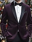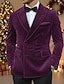 Męskie Marynarka Kołnierz zamykający Święta Zabytkowe Aksamit Solidne kolory Blazer Czerwony Fioletowy Luźny / a Dwurzędowy Sześć guzików
