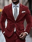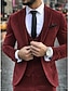 Męski Święta Impreza Tweed garnitury Klapy wcięte Czerwony Formalny Solidne kolory Dopasowana 2 sztuka zestaw Jednorzędowa, dwa guziki