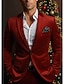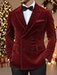 Męskie Marynarka Smokin Kołnierz zamykający Święta Zabytkowe Aksamit Solidne kolory Blazer Czerwony Zielony Luźny / a Jednorzędowa, jeden guzik