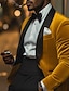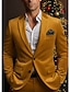 Męskie garnitury na imprezy świąteczne, casualowe, aksamitne, z klapami w szpic, w kolorze żółtym, czerwonym, na imprezę świąteczną, w jednolitym kolorze, standardowy krój, dwuczęściowe, dwurzędowe, z