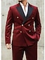 Męski Ślub Wyjazd w rodzinne strony Garnitury na imprezę Klapy ostre Czerwony Burgundowy Niejednolita całość Dopasowana 2 sztuka zestaw