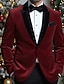 Męskie Marynarka Smokin Kołnierz szalowy Święta Zabytkowe Aksamit Solidne kolory Blazer Czerwony Luźny / a Jednorzędowa, jeden guzik