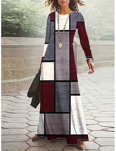 Damskie Sukienka maxi Sukienka ołówkowa Sukienka t-shirtowa Urlop Codzienny Boho Święto Randka Regularny Kwiaty Graficzny Geometryczny Długi rękaw Półgolf Niebieski Głęboki fiolet Rumiany róż Czerwony