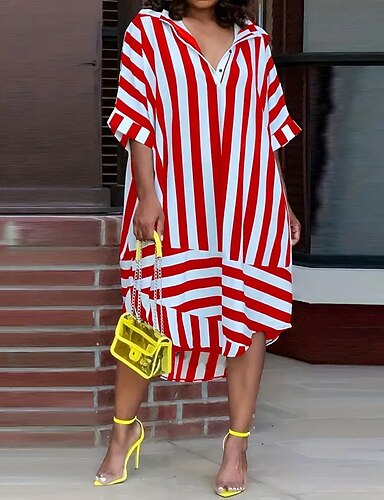 Damskie Sukienka mini Sukienka trapezowa Letnie sukienki Codzienny Codzienny Regularny Prążki Długi rękaw Klapa Niebieski Żółty Rumiany róż Czerwony Lato Wiosna Jesień