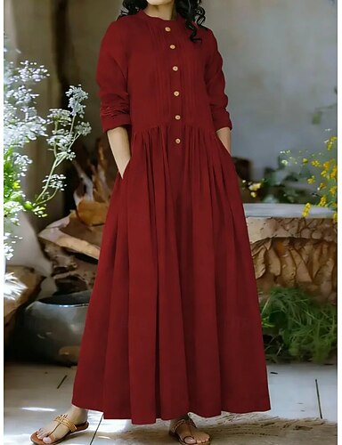 Damskie Sukienka midi Sukienka t-shirtowa Sukienka trapezowa Codzienny Boho Codzienny Sport Wyjściowe Luźna Równina Długi rękaw Półgolf Czarny Czerwony Niebieski Szary Wiosna Jesień Zima