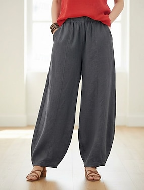 Damskie Spodnie lniane bawełniane Spodnie szerokie nogawki Typu Chino Letnie spodnie Urlop Moda miejska Podstawowy Pełna długość Średia talia Równina Kieszeń Elastyczny pas Wygodne Nieelastyczny