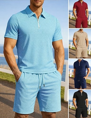 Męskie Dres Kombinezon Strój do biegania Jednoczęściowy Zamek błyskawiczny do połowy Solidne kolory Zestaw odzieży sportowej Lato Wiosna Czarny Zielony Trening w siłowni Jogging Bieganie Miękka