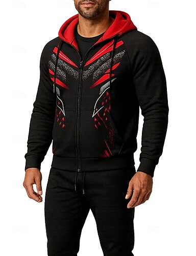 Męskie Bluza z Kapturem Dres Dres 2-częściowy Ściągana na sznurek Zapiąć na zamek błyskawiczny Geometryczny Zestawy odzież Jesień Zima Czarny Kariera Na zewnątrz Podróże Lekki Moda Długi rękaw Sport