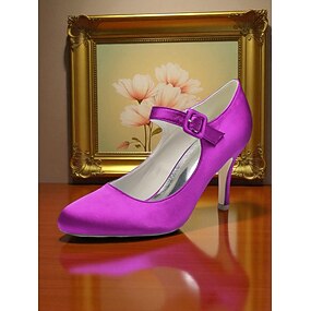 Damskie fioletowe satynowe czółenka typu slingback - eleganckie szpilki z noskiem w szpic i klamrą na wakacyjne kolacje i oficjalne przyjęcia &stylowy strój na co dzień