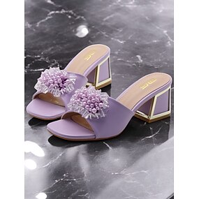 damskie fioletowe sandały z ozdobami z pereł i koralików – modne pantofle na grubym obcasie na niezobowiązujące wyjścia i wieczorne imprezy