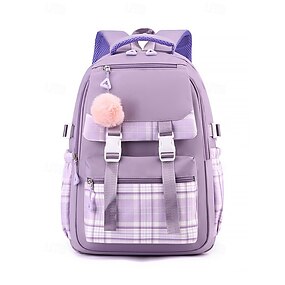 dziewczęcy plecak w kratę o dużej pojemności z pomponami – wodoodporny nylonowy worek szkolny dla nastolatek, do podróży i na uczelnię czarny różowy niebieski