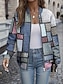 Damskie Zwykła kurtka Odporność na wiatr Zatrzymujący ciepło Kieszeń Kolorowy blok Otwarty przód Z kieszeniami Elegancja Zabytkowe Nowoczesny Geometryczny Codzienny Codzienne Krótkie Wycięcie pod