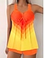 Tankini damskie 2-częściowe kolorowa blokada krótkie spodenki kontrola brzucha wysoka talia smukły bez pleców na wakacje plażowy ombre geometria dekolt w kształcie litery V bez rękawów