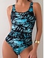 Damski jednoczęściowy kostium kąpielowy wyszczuplający strój plażowy na lato graficzny geometryczny dekolt w literę U bez rękawów