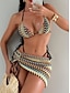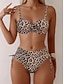 Damskie Stroje kąpielowe Bikini 2 szt Wysoka talia Kostium kąpielowy Szczupła Odkryte plecy Urlop Stroje plażowe Panterka Geometryczny Bez rękawów Kostiumy kąpielowe