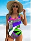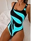 Damskie Stroje kąpielowe Jeden kawałek Wysoki krój Kostium kąpielowy Stroje plażowe lato Graficzny Geometryczny Dekolt w kształcie litery U Bez rękawów Kostiumy kąpielowe