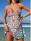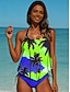 Damskie Docieplacze Strój kąpielowy z nadrukiem kwiatowym Stroje kąpielowe Tankini Geometryczny Blokowanie kolorów 2-częściowa Wyjmowane wkładki Boyleg Ochrona przeciwsłoneczna UV UPF50+ Elastyczny
