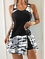 Kostium kąpielowy tankini dla kobiet 2 częściowy szorty bez pleców wakacje plażowe graficzny geometryczny dekolt w serek bez rękawów