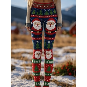Damskie Spodnie Getry Przytulne legginsy Urlop Zabytkowe Moda miejska Pełna długość Natutalne Graficzny Święty Mikołaj Święta Elastyczny pas Nadruk Wygodne Na zewnątrz Wygodny Elastyczny Na zewnątrz