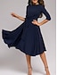 Damskie Sukienka midi Sukienka A line Elegancja Gość weselny Wieczorna impreza Regularny Jednokolorowe Rękaw 3/4 Półgolf Wino Wiosna Jesień Zima