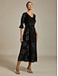 Damskie Normalny Sukienka do kolan Czarna sukienka Elegancja Zabytkowe Rękawy Splicie Impreza Gość weselny Spotkanie towarzyskie Regularny Rękaw 3/4 Półgolf Czarny Lato Wiosna Jesień