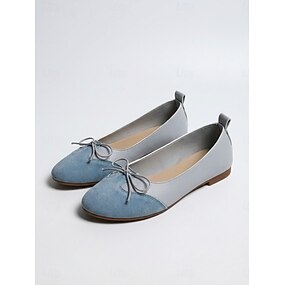 Damskie jasnoniebieskie baleriny z kokardką – kolorowe, wsuwane buty ze sztucznego zamszu na niezobowiązujące wyjścia i do noszenia na co dzień