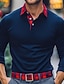 Męskie Koszula golfowa Pikowe koszulki polo Urlop Praca Wieczorne Długi rękaw Moda Podstawowy Jednokolorowe Kratka Kratka Guziki Lato Wiosna Zima Regularny Czerwony Granatowy Zielony Beżowy Koszula