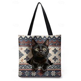 Damska torba świąteczna, wzór płatka śniegu w kolorze zielonym i Fair Isle, materiał z poliestru, wzór rudego kota, torba na zakupy i prezenty świąteczne