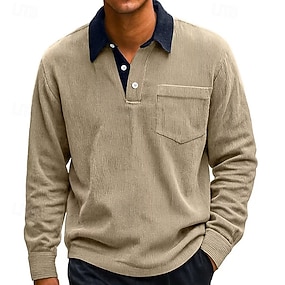 Męskie Koszula sztruksowa Koszula golfowa Praca Codzienny Klapa Długi rękaw Podstawowy Nowoczesny Kolorowy blok Guziki Wiosna Jesień Regularny Czarny Biały Czerwony Granatowy Niebieski Pomarańczowy