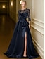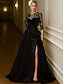 Krój A Suknia wieczorowa Elegancja Suknia formalna Formalny Ślub Sięgająca podłoża Długi rękaw W serek Kieszonki Aksamit z Rozcięciem Kieszeń 2025