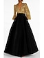 Czarno-Białe Suknie Wieczorowe A-Linia Elegancka Sukienka Formalna Na Ślub Długość Do Podłogi Długi Rękaw Okrągły Dekolt Kieszeń Satyna z Kieszenią z Cekinem