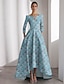 Sukienka Kwiatowy Żakard A-Linia Sukienki Cocktail Wysoka-niska Sukienka Formalna Czarna Suknia dla Gali 3/4 Długość Rękawa V Dekolt z Kieszenią