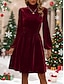 Damskie Sukienka mini Sukienka świąteczna Aksamitna sukienka Sukienka koktajlowa Sukienka A line Codzienny Impreza Ulica Wieczorna impreza Regularny Równina Długi rękaw Golf Czarny Wino Zielony