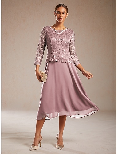 damska sukienka midi szyfonowa sukienka z cekinami elegancka na wesele, wieczorne przyjęcie, regularny krój, jednolity kolor, rękaw 3/4, okrągły dekolt, różowy, lato, wiosna, jesień, zima
