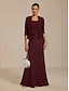 Damskie Sukienka midi Sukienka A line Sukienka z marynarką Elegancja koktajl Sukienki półformalne Formalny Impreza Gość weselny Regularny Kwiaty Długi rękaw Półgolf Burgundowy Wiosna Jesień Zima