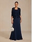 Damskie Sukienka midi Sukienka ołówkowa Sukienka z marynarką Elegancja koktajl Sukienki półformalne Formalny Impreza Gość weselny Regularny Kwiaty Długi rękaw Półgolf Granatowy Wiosna Jesień Zima