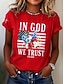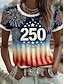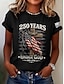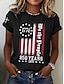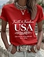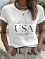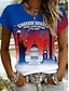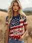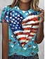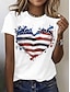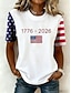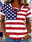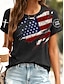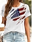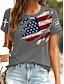 Amerykański Dzień Niepodległości Damskie Podkoszulek Nadruk Graficzny Litera Flaga Ameryki Elegancki Klasyczny Codzienny Krótki rękaw Półgolf Zwykłe topy Codzienny Niebieski Czarny Biały Czerwony