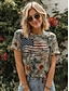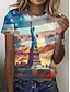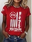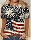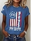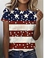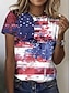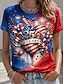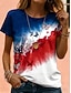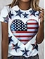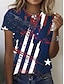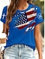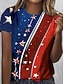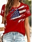 Amerykański Dzień Niepodległości Damskie Podkoszulek Nadruk Graficzny Flaga Elegancki Klasyczny Codzienny Krótki rękaw Półgolf Okrągły dekolt Zwykłe topy Codzienny Niebieski Czarny Czerwony Lato